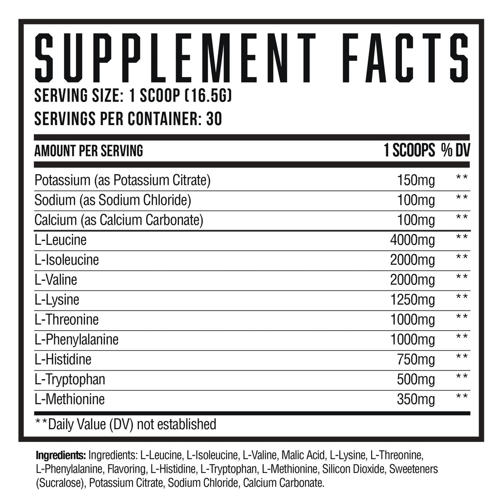 Huge EAA bevat in totaal meer dan 12 gram essentiële aminozuren. Elk van de aminozuren in deze formule is optimaal gedoseerd om ervoor te zorgen dat het fundamentele voedingsstoffen levert.
