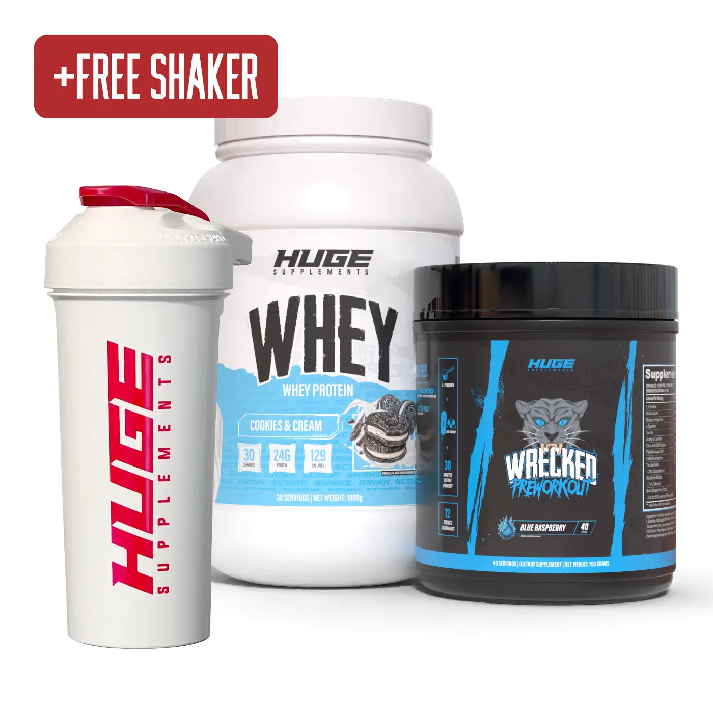 Als aanvulling op Wrecked hebben we Huge Whey toegevoegd. Huge Whey is het ultieme wei-eiwitsupplement dat jou kan helpen jouw fitness- en bodybuildingdoelen te bereiken. Elke portie biedt 25 gram eiwit om jouw lichaam te voorzien van de bouwstenen die het nodig heeft voor optimale prestaties en groei.