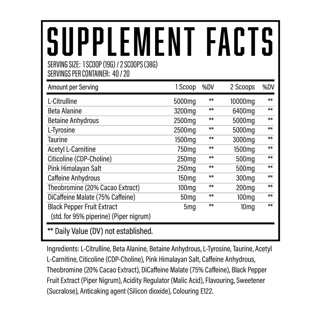 Elke sample bevat exact dezelfde krachtige blend als in de full-size pot, samengesteld met 12 klinisch gedoseerde ingrediënten om intensieve trainingen te ondersteunen. Van extreme pomp-ondersteuning met 10.000 mg L-Citrulline, tot verbeterd uithoudingsvermogen en prestaties door 6.400 mg Beta-Alanine, aangevuld met focusgerichte ingrediënten zoals L-Tyrosine en Citicoline, Wrecked is ontworpen om op alle fronten te presteren.